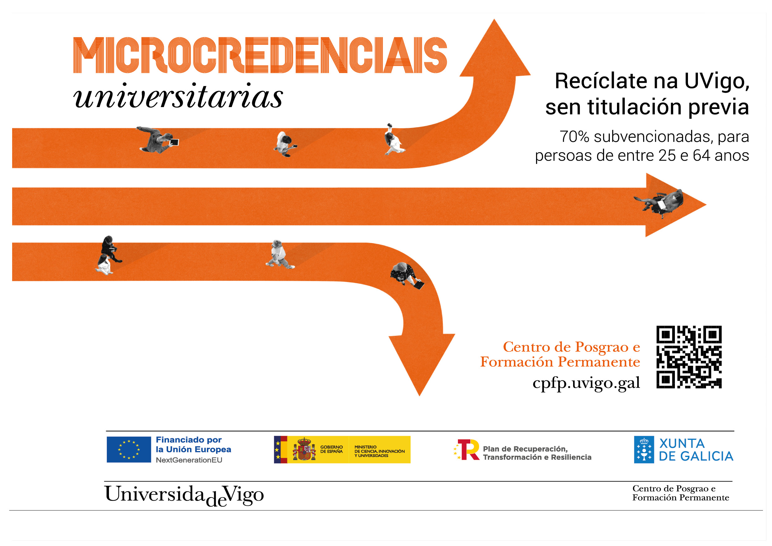 Ata o 27 de abril poderás solicitar a bolsa do 100% do custe dun listado de microcredenciais adheridas ao Plan de desenvolvemento de Microcredenciais da Universidade de Vigo, grazas á subvención recibida da Xunta de Galicia con fondos do Ministerio de Ciencia, Innovación e Universidades. Plan de Recuperación, Transformación e Resiliencia – Financiado pola Unión Europea – NextGenerationEU.